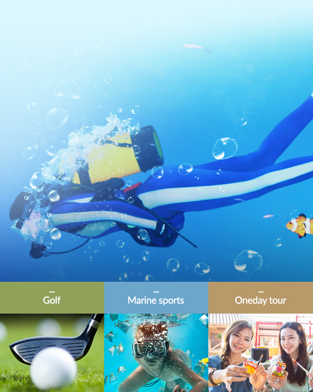 골프와 1일 관광, 스쿠버다이빙에서 마린스포츠에 이르는 다양한 액티비티의 테마를 제공하여, 각종 체험 여행의 선두 주자로써 여행의 새로운 감각을 제공합니다.